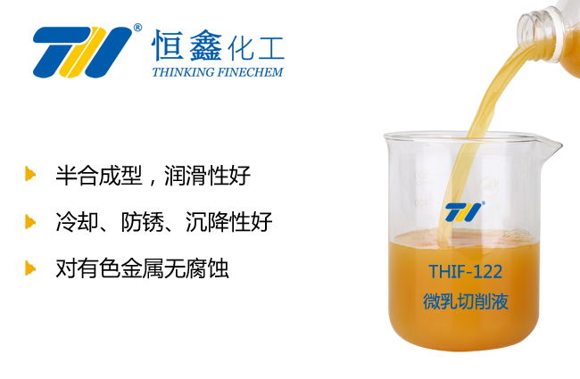 產品簡介THIF-122半合成環保切削液是一種不含重金屬離子及亞硝酸鹽的環保型半合成切削液,不易變質發臭,克服傳統乳化液夏天易臭、冬天難稀釋、防銹效果差的缺點。用于各種金屬的多種工藝加工,應用范圍廣泛。產品特點①無油脂,機床及加工件表面干凈,易清洗。