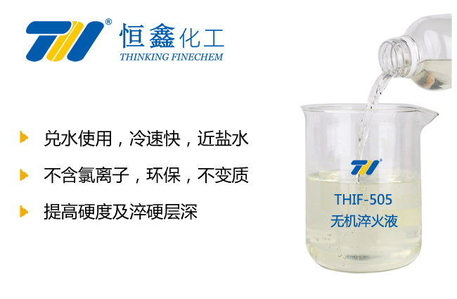 產(chǎn)品簡介THIF-505無機(jī)淬火液不燃燒,無味,不腐蝕,不老化變質(zhì),是一種高分子無機(jī)聚合物飽和溶液,且抗污染能力強(qiáng),熱穩(wěn)定性好,高溫不分解,并具有一定的防銹能力。無機(jī)淬火劑廣泛應(yīng)用于滲碳、碳氮共滲鋼、碳素鋼、中低合金鋼及中低淬透性結(jié)構(gòu)鋼等鋼種的淬火。產(chǎn)品特點(diǎn)①無機(jī)淬火劑可與水完全溶合,使用過程中不會發(fā)生分層。